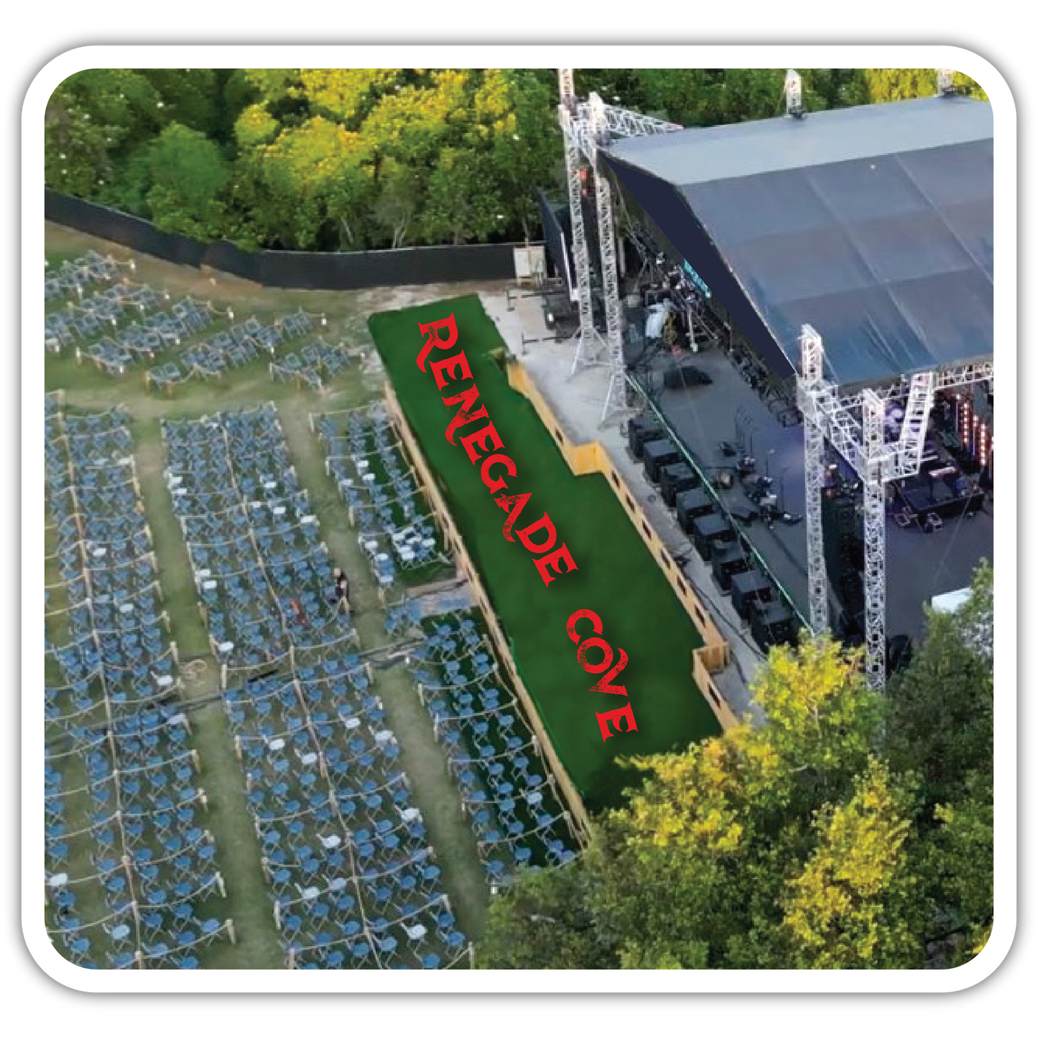 Spend your weekend up close to the action with a 3-day Renegade Cove pass! Renegade Cove is our standing-room-only, front-row experience. Situated 24" below the Coves behind it, Renegade Cove offers an unobstructed view for everyone, with space for up to 300 people.