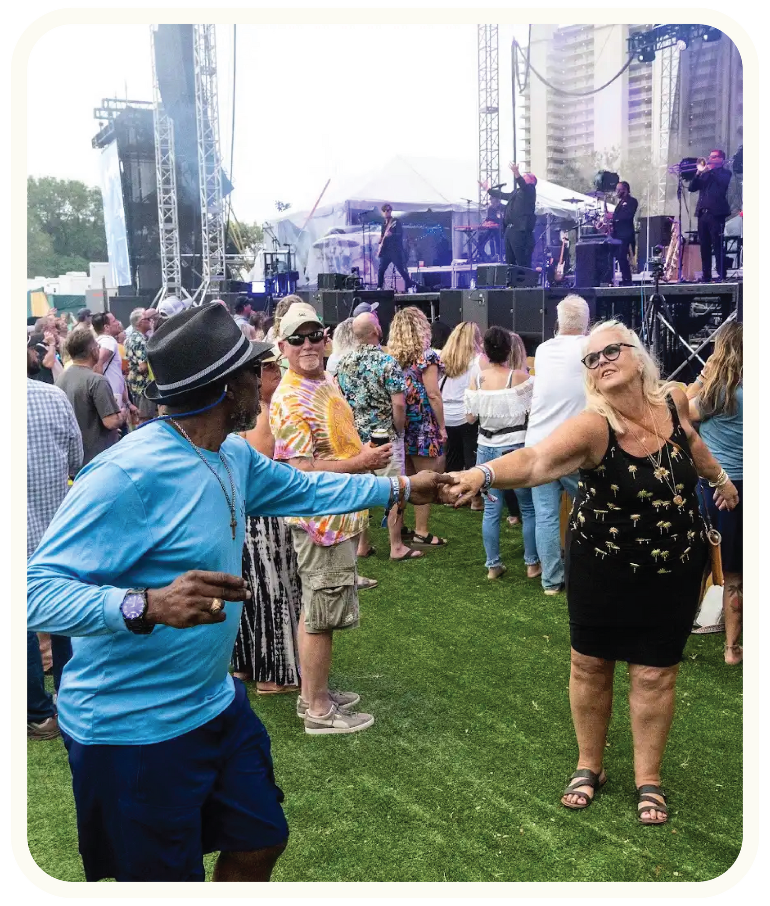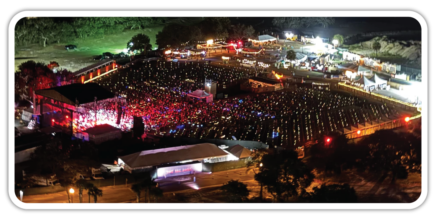 Our intimate music venue is located just a few hundred yards from the ocean and accommodates up to 5,500 guests in reserved Coves. Each Cove offers a great view, includes one chair for each person, food & drink delivery options plus quick access to walk up bars, food trucks and air conditioned restrooms. Get ready for a truly memorable weekend at the beach with the best music and your favorite people!